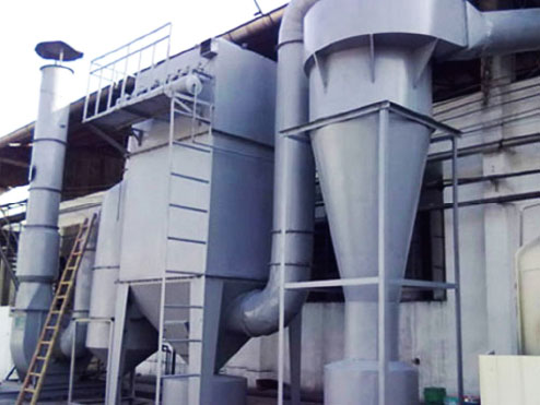 含塵氣體從進氣口進入后,沿器壁以螺旋狀由上而下向底部圓錐體運動,形成下降的外旋氣流,在強烈旋轉(zhuǎn)過程中所產(chǎn)生的離心力將密度遠遠大于氣體的塵粒甩向器壁,塵粒一旦與器壁接觸,便失去慣性而靠入口速度的動量和自身的重力沿壁面下落進入集灰斗。旋轉(zhuǎn)下降的外旋氣流在到達圓錐體時,因圓錐形的收縮而向除塵器 中心靠攏。根據(jù)旋矩不變原理,其切向速度不斷提高,粉塵粒子所受離心力也不斷加強。當氣流到達圓錐體下端某一位置時,即以同樣的旋轉(zhuǎn)方向沿除塵器的軸心部 位轉(zhuǎn)而向上,形成上升的內(nèi)旋氣流,并由除塵器的排氣管排出。
